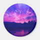 Uma paisagem cênica colorida de um sol de posição no horizonte de um lago. Os raios do sol brilhando estão se quebrando pelas nuvens, refletindo sobre a água.