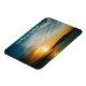 A vista da cidade de Thira (Thera) do pôr do sol sobre a caldeira e o mar Egeu, com as ilhas de Trênásia e Nea Kameni silenciadas; Santorini, ilhas de Cíclades, Grécia.