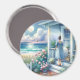 Uma lua tranquila sobe sobre o oceano nesta arte costeira de cottagecore, onde ondas suaves brilham sob uma visão lua do oceano. Esta ilustração sonhadora à beira-mar captura uma pacífica cena da varanda com uma mulher em uma estética de vestido de gingham azul, olhando para a água à medida que as gaivotas soam pelo céu do crepúsculo. A noite da praia da lua de cheio brilha sobre as grandes hipórteses cor-de-rosa, um cenário vintage de verão que irradia a calma. Enquadrada por uma cerca branca de picete e pelo picket walkway, esta pintura de jardim hydrangea combina o encanto do livro de histórias com tranquilo decoração costeira, evocando uma sensação de vida lenta e refletiva. A IA gerou trabalho de arte.