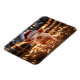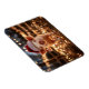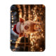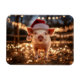 Íman flexível com um porco adorável vestindo um chapéu de Papai Noel e rodeado por luzes cintilantes de Natal.
