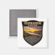 Porcupine Mountain State Park trabalho de arte em um design de crachá. O parque é um grupo de pequenas montanhas que percorre o noroeste da Península Superior de Michigan, nos condados de Ontonagão e Gogebic, perto da costa do lago Superior.