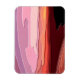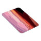 Um design de arte abstrato do pôr do sol em cores rosa, lilás, preta, vermelha e pêssego.