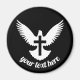 Silhueta de pomba com asas abertas e uma cruz. Texto personalizado.