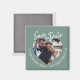 Ímã de salvar a data com script moderno e foto em verde empoeirado, apresentando uma janela de foto em forma de coração, fundo verde suave e texto em script feito à mão em branco. Este design exibe sua foto de noivado ao mesmo tempo em que apresenta claramente a data e o local do casamento em uma paleta de cores calma e orgânica que se adequa a uma ampla variedade de estilos de casamento. Ideal para casamentos, celebrações ao ar livre, eventos de destino ou renovação de votos com uma estética refinada e natural. Personalize facilmente com seus detalhes.