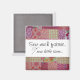 Para todas as invenções da sua vida, incluindo você mesmo. Todos nós sabemos que você nunca pode ter tecido suficiente! Uma manta de retalhos de fundo tecido, bonita, multicolorida e padronizada, com as palavras "Pequeno tecido, costurar pouco tempo..." num fundo branco.