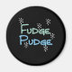 Cartões de cartões de natal do Fudge Pudge, T-shirts, canecas, sacos de tote, e outros artigos do Fudge Pudge com texto azul e verde e flocos de neve, fofo e divertido para os feriados, perfeito se você ama fudge!