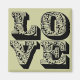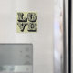 AMOR ímã quadrado. A cor de fundo pode ser personalizada.