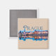 As luzes do início da noite refletem-se no rio nesta imagem de souvenir do horizonte de Praga. Este design de souvenir faz parte da minha série Destino. Este ímã de geladeira é totalmente personalizável.