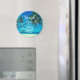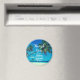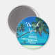 Um ímã comemorativo de agradecimento de casamento. Criado com uma foto de tema tropical com palmeiras de coco se estendendo por uma praia isolada de areia branca. Águas turquesa e um céu azul celeste ao fundo. Fácil adicionar seu nome e data do casamento.