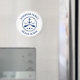 Íman de na moda round gelador com sua casa de praia personalizada, casa de lago, nome de família ou outro texto com âncora náutica personalizada, remos cruzados e estrelas em branco em azul marinho ou escolha cores de fundo para corresponder à sua decoração.