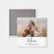 Ímã de presente de foto de mãe estabelecida com data ou datas elegantes de script mínimo estabelecidas do ano em que seu primeiro filho e cada filho adicional nasceu em tema moderno preto e branco. Mantenha o nome "Mãe" ou mude-o para o nome pelo qual ela é chamada. Totalmente ao seu critério!
