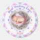 Bonito Circular Dia das Mães Nova Mama Menina Menina Foto de Magneta de Presente. Em primavera e verão, cores de rosa pastel e roxo. Um horário de primavera e uma borda redonda ao redor do verão rodeia a foto no meio. Substitua a foto por uma foto do seu novo e belo menino ou menina, ou criança. O texto no topo diz "Melhor Mamã Nunca!" em roxo. No fundo está o ano, em rosa. Personalize-o mudando o ano. Dê como presente para uma nova mãe no Dia das Mães. Mamãe, mãe, mãe, mamãe, múmia e mãe adorarão colocar esse íman de presente na geladeira para celebrar o nascimento do novo bebê. Em cores lindas, brilhantes e leves.