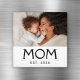 Presente de Foto para a Mamãe - Tipografia Clássica Preta Minimalista e Elegante de Mamãe - Dê à Mamãe o reconhecimento que ela merece com esse ímã divertido em preto e branco. A palavra "MAMÃE" aparece em tipografia preta clássica em um fundo branco, com as palavras "FUN." ("Fundada") e o ano abaixo. Substitua facilmente a foto de exemplo pela sua foto favorita da mamãe e do bebê. Edite o texto para exibir uma ou mais datas de nascimento. Outras variantes curtas de "mamãe", como "mãe" ou "mama", podem ser substituídas. Faz um ótimo presente para o Dia das Mães ou aniversário da Mamãe!