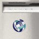 Este ímã temático de vôlei com cores personalizadas apresenta a imagem realista de um vôlei que tem painéis azuis, lacrimogêneos e brancos em que você pode personalizar o nome do jogador & número de camisa mais nome da escola ou do clube e o nome da mascote em uma letra estilo varsity - por katz_d_zynes