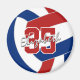 Esta equipe colorido ímã de voleibol apresenta a imagem de um voleibol vermelho, azul e branco, sobre o qual você pode personalizar o número e o nome da camisa do atleta - por katz_d_zynes