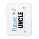 Caixas de manutenção, azulejos, ornamentos, notebooks, canecas, ímanes, cartões, botões, capuzes, chaveiros e outros futuros itens de presentes e roupa de tio com texto azul e preto e design de estrela.