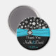 Este flocos de neve preto e branco favorece o obrigado que você imã com FAUX aqua azul fita e medalhão de flocos de neve combina com o convite de casamento mostrado abaixo. Todo o texto é personalizável e você pode alterar o tamanho e a forma. Se você precisar de outros itens correspondentes neste design, envie seu pedido por e-mail para niteowlstudio@gmail.com.