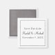 Um imã perfeito para salvar a data do seu casamento, este item apresenta um fundo branco clássico com texto preto, personalize o seu hoje!