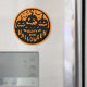 Ousada e festiva, esta magnet de Halloween preta e laranja apresenta abóboras sorridentes, morcegos e uma mensagem de “Feliz Halloween” em letras assustadoras.