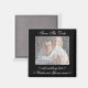 O fundo deste ímã é preto sólido. O texto personalizável diz: "Salvar a data". Texto personalizável adicional para o nome do casal feliz e data do casamento. Carregue sua própria foto para completar a aparência! Ideal para qualquer ocasião. Comprar em massa e salvação!