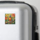 A sweet magnet with an impasto painting style parrot and colorful coral and yellow tropical flowers.