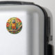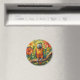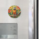 A sweet magnet with an impasto painting style parrot and colorful coral and yellow tropical flowers.