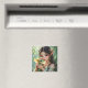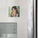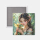 A pretty anime elven fairy holding her cute green and gold baby dragon fairy tale themed magnet.