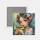Fairy Tale themed magnet. A pretty anime fairy holding her cute baby dragon. A beautiful fairy tale vibe in an enchanted setting ethereal art.