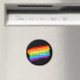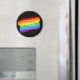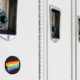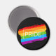 Este trabalho de arte apresenta um arco-íris colorido com a palavra Orgulho.
