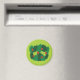 O ímã da primavera com uma ilustração lunática dos desenhos animados dos joaninhas vermelhos que rastejam sobre o verde sae em máscaras diferentes sobre a luz - fundo verde. Este ímã lunático apelará a uma menina do amante de natureza que goste da estação de primavera e do verde da cor.