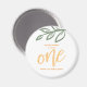 Adquira este belo ímã de primeiro aniversário acentuado com folhas de pintura de rabisco. Personalize-o com o nome do seu filho ou filha.