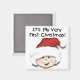 Um bebê asiático adorável vestido com um boné vermelho e branco e um texto no estilo de criança que diz 'É o meu Primeiro Natal!' aparece no nosso saco de férias disponível em várias cores e estilos!