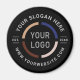 Logotipo simples redondo personalizado da empresa com o slogan e o endereço do site em fundo preto editável a cores, sem quantidade mínima do pedido e sem taxa de instalação. Itens de promocional da marca do excelente. Selecione "Clique para personalizar mais" para ajustar o tamanho do logotipo ou personalize a cor preta do plano de fundo.