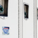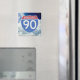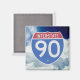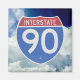 Fotografia de um escudo Interstate 90 isolado contra o céu azul com nuvens brancas puffy. Imagem blindada de 2017 por Margaret E. Cmelik.