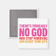 Provavelmente não há deus, então pare de se preocupar e aproveite a sua vida. Letras cor-de-rosa e amarelas. É semelhante à campanha de ônibus ateu popularizada na Inglaterra e nos Estados Unidos por Richard Dawkins. Diga a todos, você é ateu, e você não está envergonhado.