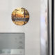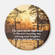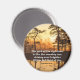 Um ímã de escritura de aspas inspiradoras retrata uma bela fotografia da natureza com o sol brilhando através das árvores na floresta e refletida na água. Apresenta Proverbos Versos Bíblias 4:18, "O caminho dos justos é como o sol da manhã, brilhando cada vez mais brilhante até a luz do cheio do dia."