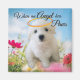 The design depicts a bichon puppy in a meadow looking angelic.