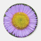 Magneta redonda decorativa para casa ou escritório que mostra a foto de uma flor bonito, roxa Fleabane Daisy, membro da família Aster. Um design floral adorável! Selecione o tamanho do seu ímã.