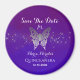 Borboleta prateada moderna, elegante, única e brilhante em combinação com um adorável fundo azul roxo. Chic, caprichosa, eterno Quinceanera, salve o ímã do convite.