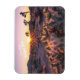 Púrpura Laranja Cholla Cactus Joshua Tree Sunset Magnet: Imagem maravilhosa por pôr do sol de um cacto colla no Parque Nacional Joshua Tree, com uma árvore joshua no fundo e uma linda estrela do sol.