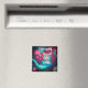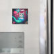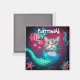 Magneta com imagem de gato como sereia, ou purramida cercada por criaturas marinhas.