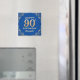 90 Festa de aniversário Azul e Dourado magneto de quadro brilhante. Para mais personalização, clique no botão "Personalizar" e use nossa ferramenta de design para modificar este modelo.