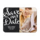 Esta bela foto ao estilo vintage salva as características da data "Salve nossa data" escrita em uma caligrafia maravilhosa contra um fundo de quadro. Personalize com seus detalhes de casamento e sua foto favorita.