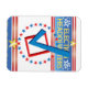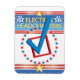 Esta imagem é feita em cores vermelha, azul e branca. Uma estrela e a "Sede Eleitoral" são feitas em ouro. Uma marca vermelha em um círculo de estrelas azul e vermelha. Este ímã está disponível em formas e tamanhos variados.