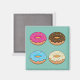 Uma ilustração de quatro rosquinhas sorteadas, morango cor-de-rosa, chocolate castanho, pastilha elástica azul e chocolate branco com borrachas coloridas para namorados doces em fundo lacrimogêneo. Este padrão de design de desenho bonitinho é uma ideia presente para amantes doces e sobremesas, e amantes de donuts.