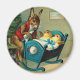 Placa de saudação de Páscoa com um coelho balançando um suporte e dois pintinhos no suporte.