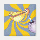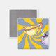 O design neste Magnet Quadrado é um pássaro de desenho animado com um bico incomum, uma cabeça laranja e listras azuis e brancas no pescoço. Ele está se livrando de sua casca de ovo roxa. Ilustração de lápis colorido. Clique no botão personalizar para adicionar texto e personalizar. Para além da espiral azul, há outras 7 espirais coloridas de fundo a escolher. A espiral amarela pode ser alterada para qualquer cor usando a ferramenta de cor de fundo.