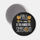 A pequena abóbora marrom, cogumelo, e as ilustrações das botas-de-chuva e o grande texto: Queda é a minha estação favorita.