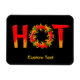 Quente com a letra O feita de um círculo de chama com pimentões picantes.