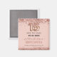 Rapariga reluzente, fundo cor-de-rosa milenar, com tipografia de nome de script de rico. Texto do balão rosa dourado 15. Excelente para comemorações de marmelos. festa de aniversário 15 Salve os ímãs de manutenção de data